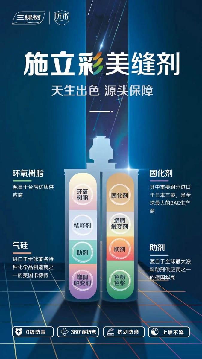 6 装饰效果特别强,颜色丰富、 自然细腻,具有光泽,不褪色,给墙地面带来更好的整体效果(市场上的填缝剂颜色暗淡无光泽,配色受限制)。目前有亮光系列、亚光系列、金属系列,还有奇特及夜光等更******的色彩。