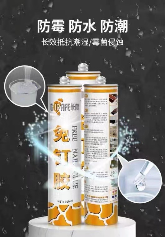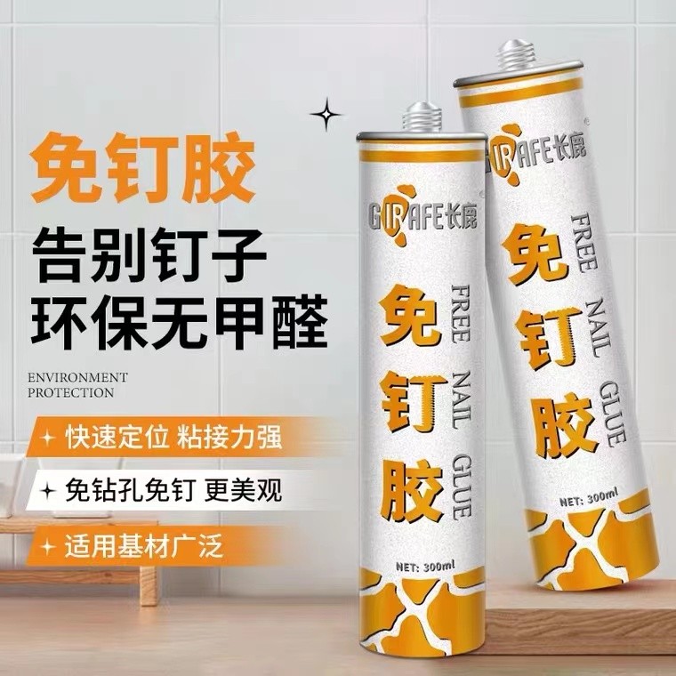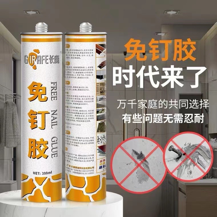 长鹿免钉胶,具有极强粘合力,能极大程度代替钉子,不用表面钻孔来固定和粘接木材、石膏板、中密度纤维板、石材、水泥、瓷钻、金属、塑料、橡胶等材料。
