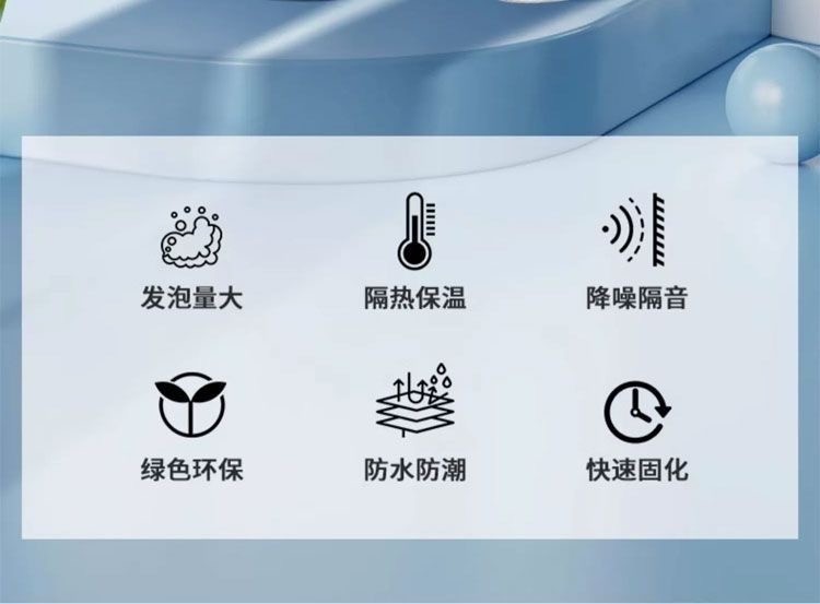 速的奥进口发泡胶是聚氨酯发泡BOM核心技术,此款泡沫具備出色的隔熱和隔音性能,可以粘附在幾乎所有建築材料上,例如磚、混凝土、保溫材料、管道、電纜、導管、木材、金属和塑膠(PP、PE、PTFE 和矽樹脂除外)。