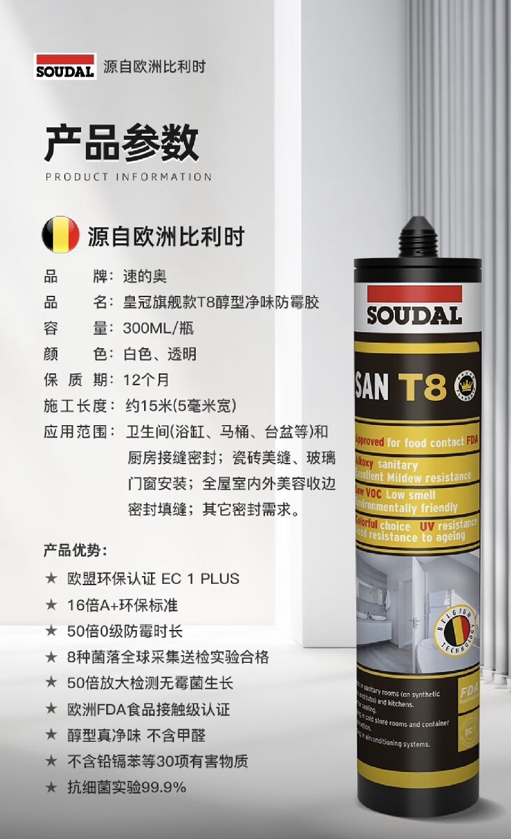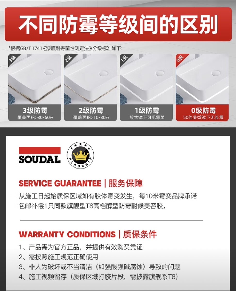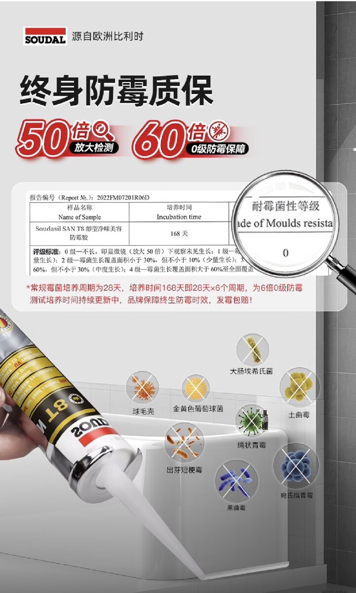 醇型,单组份,低气味低排放,高弹性,防霉性能优异的硅酮密封胶。具有非常好防水抑菌的作用,固化后保持******弹性,对许多基材有很好的附着力,以及长期的耐老化性能。